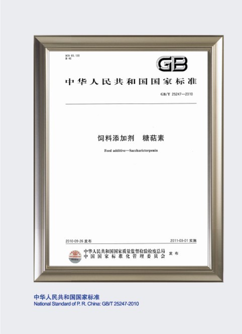 National Standard “Feed Additive - Saccharicterpenin”(No GB/T25247-2010) issued.